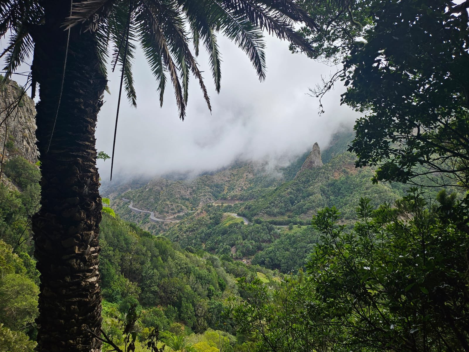 Cambio radical de paisaje y primer contacto con el Parque Nacional de Garajonay, Patrimonio de la UNESCO, con la laurisilva más extensa y mejor conservada de Canarias.