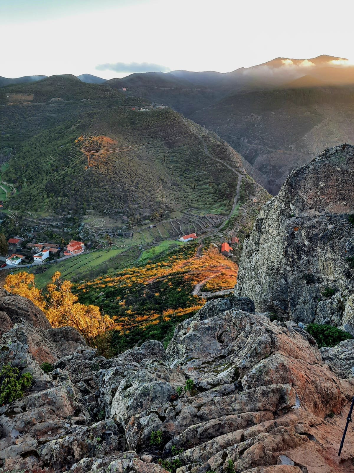 Durante la primera subida pasaremos junto al Roque Cano, emblema de Vallehermoso, hasta llegar a la Cruz de Tierno.