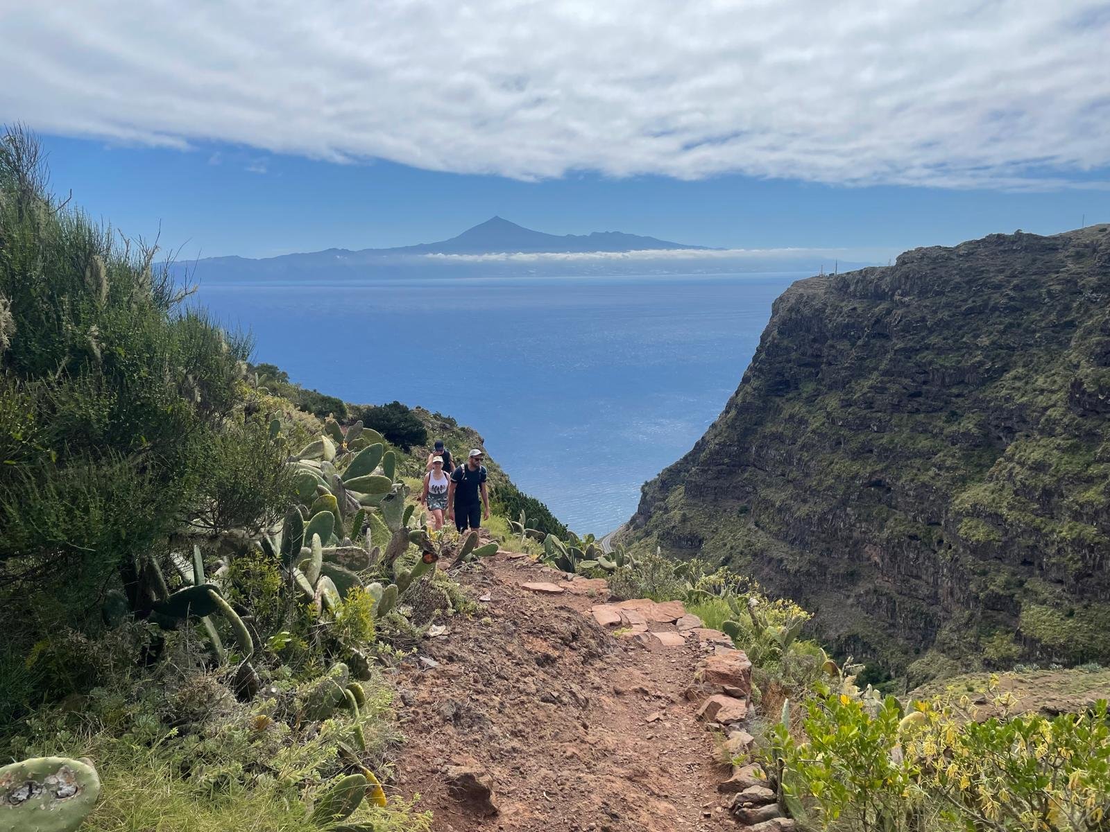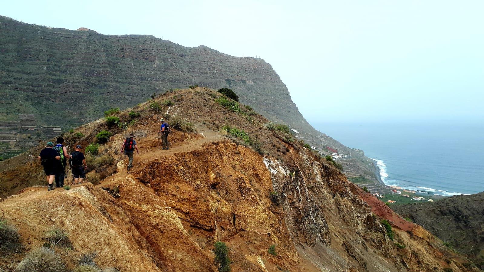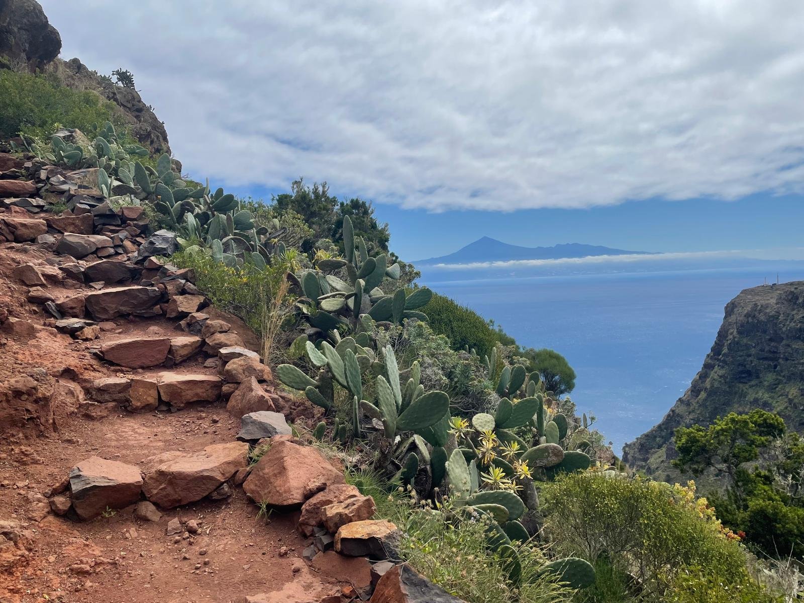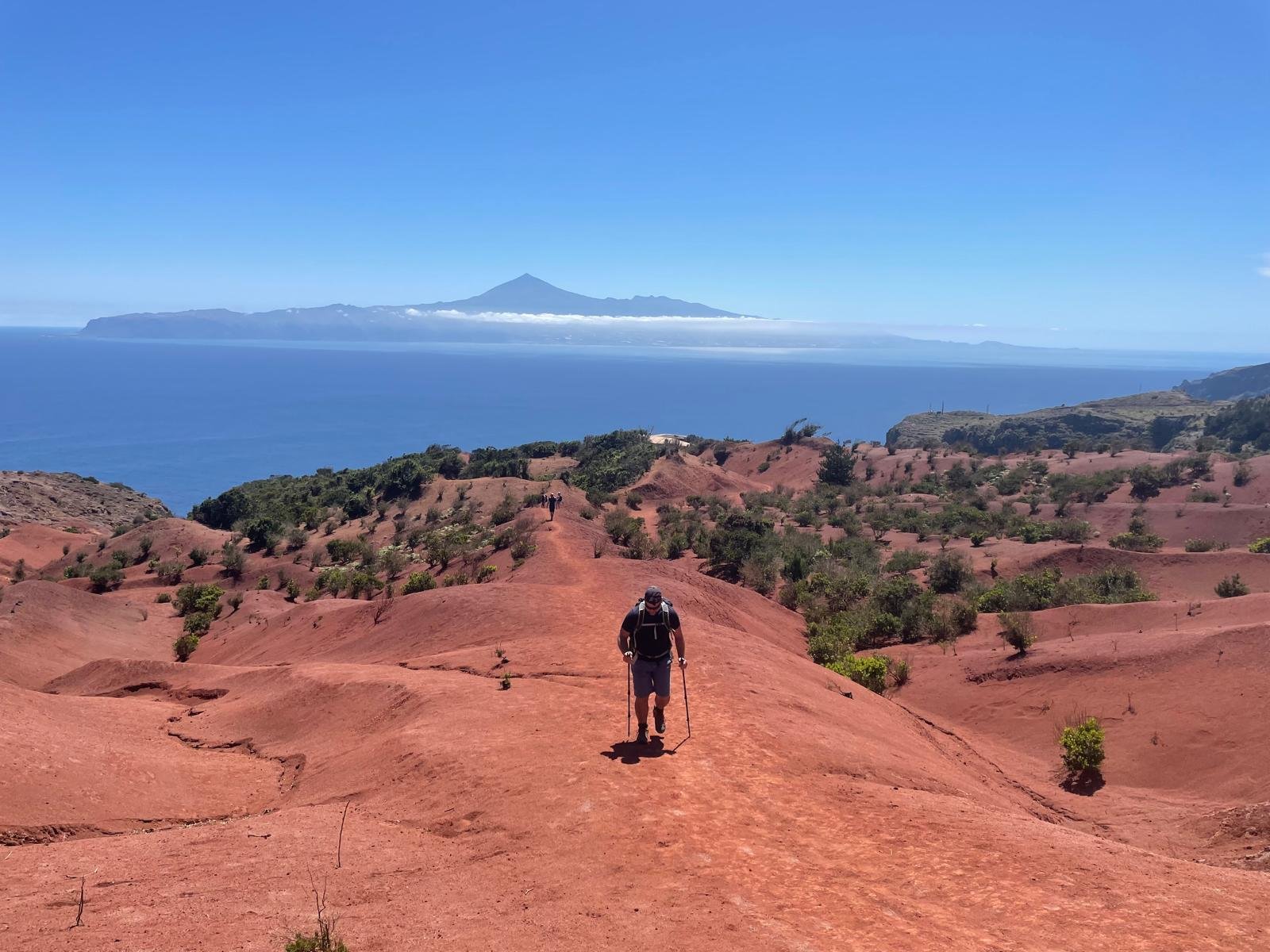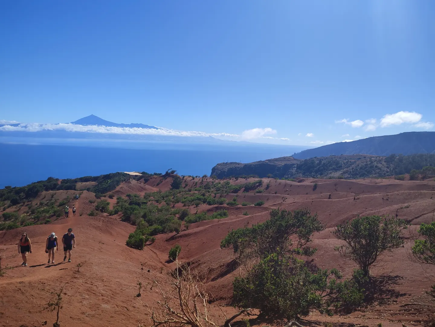 Luego visitaremos el Mirador de Abrante, famoso por su tierra roja, y descenderemos hacia Agulo por el mítico sendero de Los Pasos.